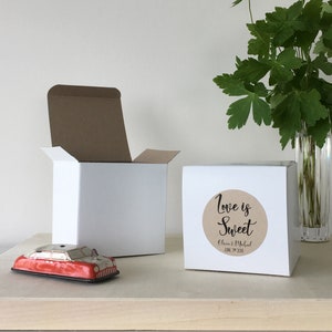 Boxes are food safe making these perfect to fill with treats such as candy, baked goods or sweets. Or to include on a sweet table for your guests to fill with treats to take home.