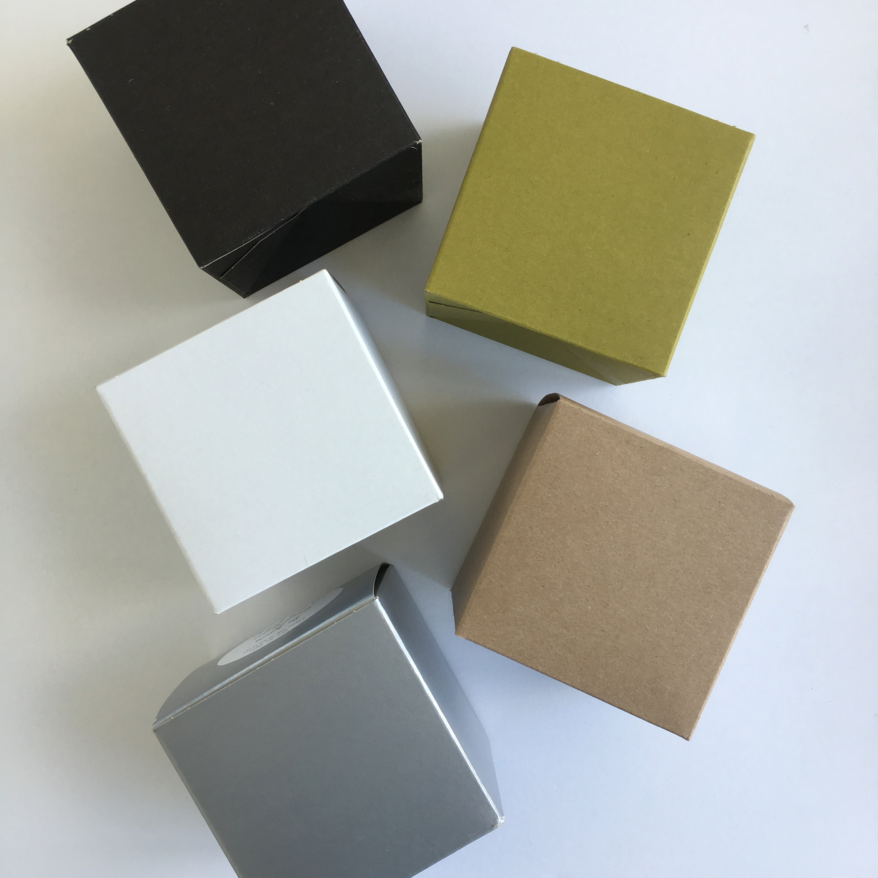 Boxes come in Black, Green, Silver, White, Brown Kraft. The interior of all of the boxes is kraft paper brown.
