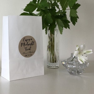 Labels are customized with the couples names as well as the date of the wedding.