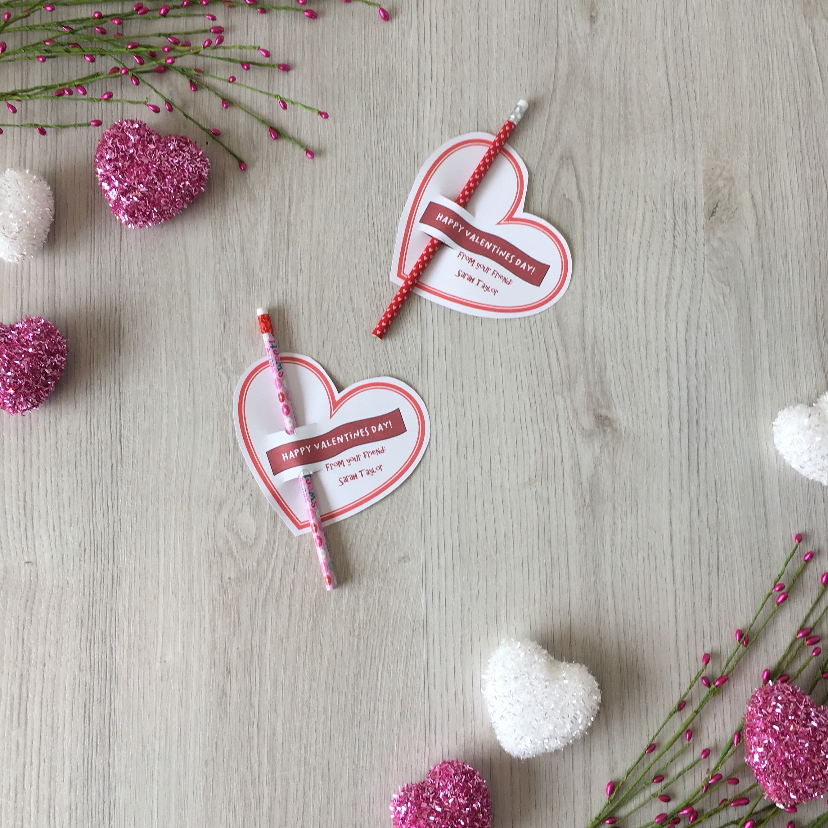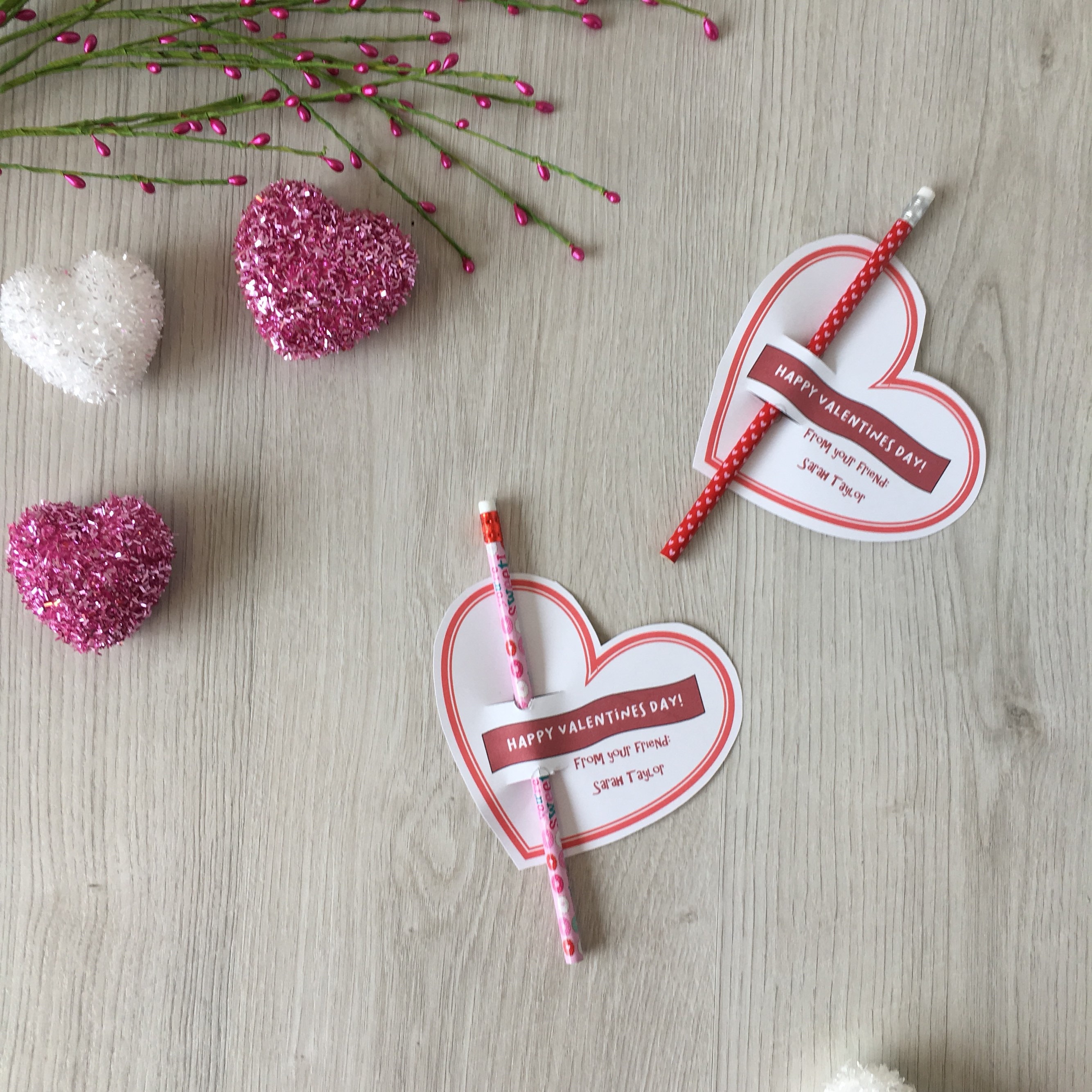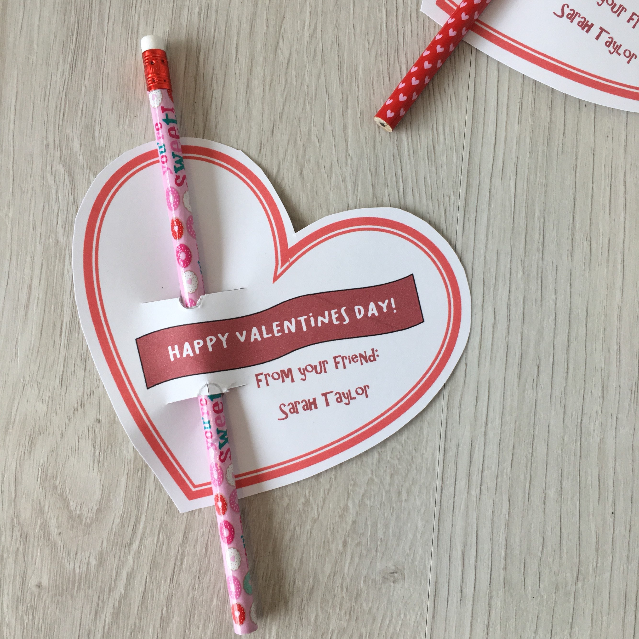Featuring a pencil with a Valentines theme