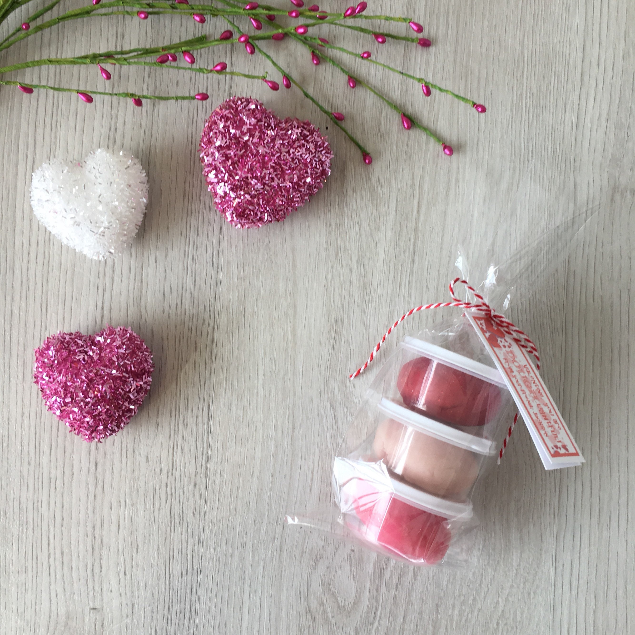 Play dough Valentines favors - handmade play dough - handmade playdoh - unplugged activity kits - non candy gift options - creative kids crafts - kids sensory play - play dough activity kits - childrens activity set - playdough kit - doughlightful - rainbow play dough - rainbow theme party - valentine's heart theme - play dough loot bags - valentine playdoh gifts - valentine's play dough kit