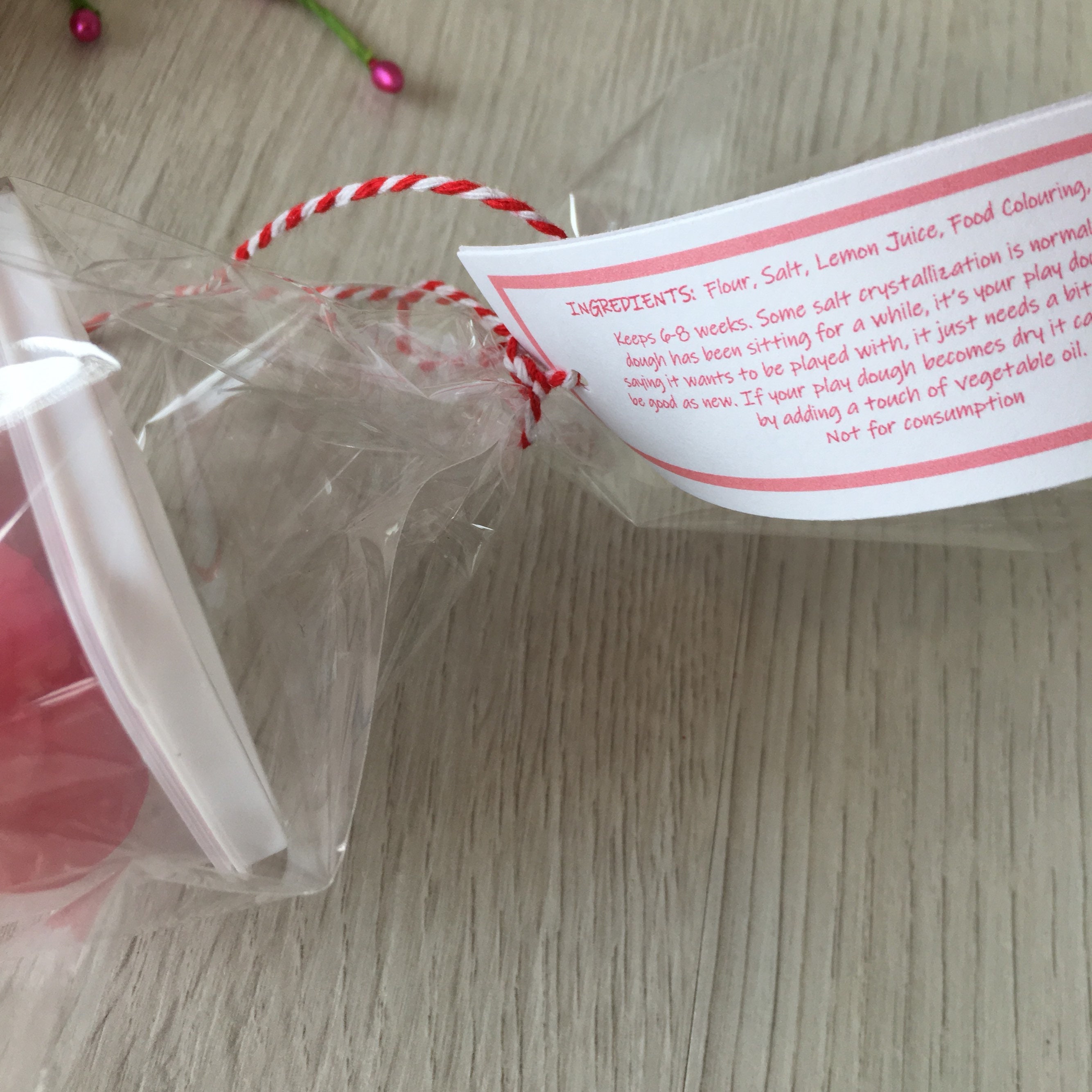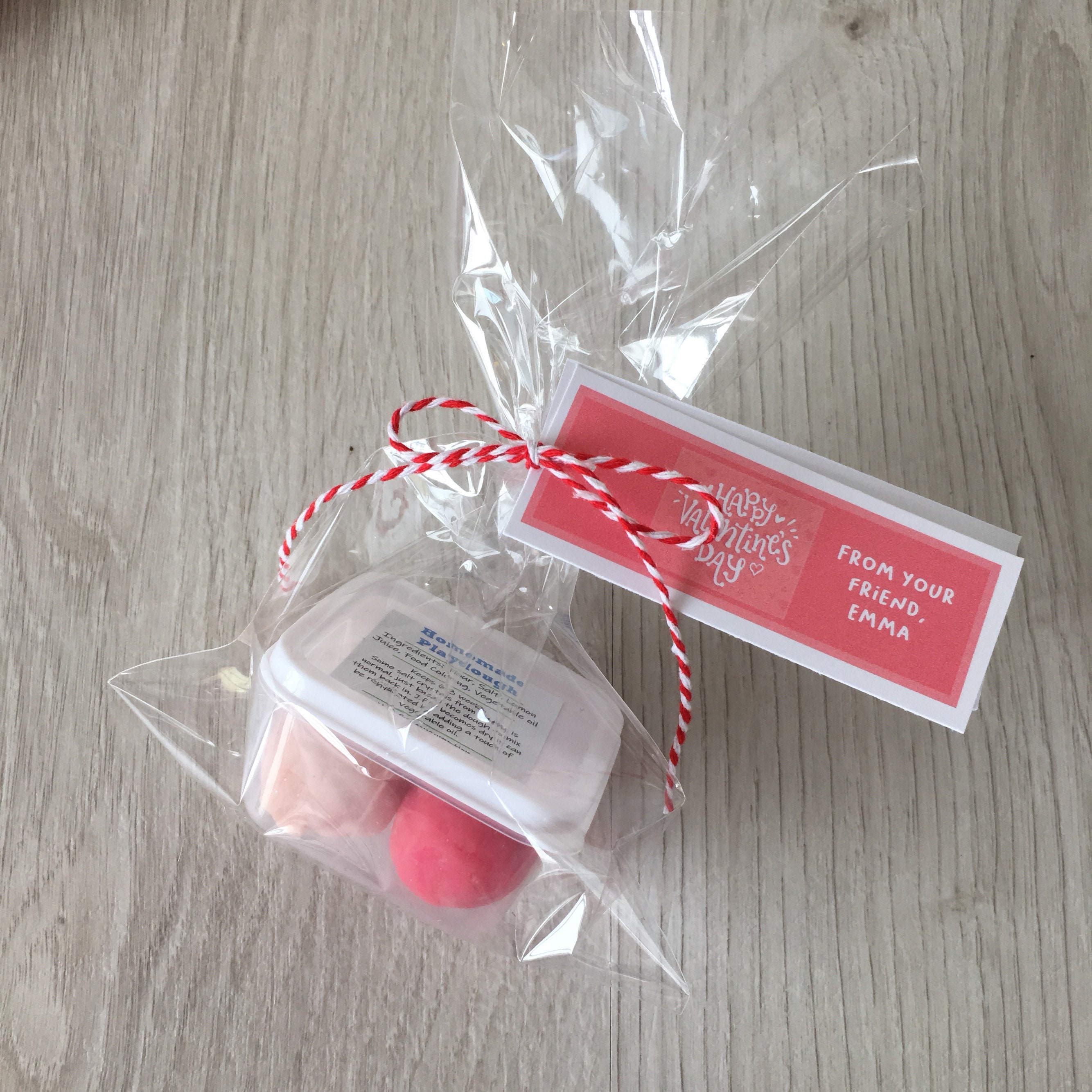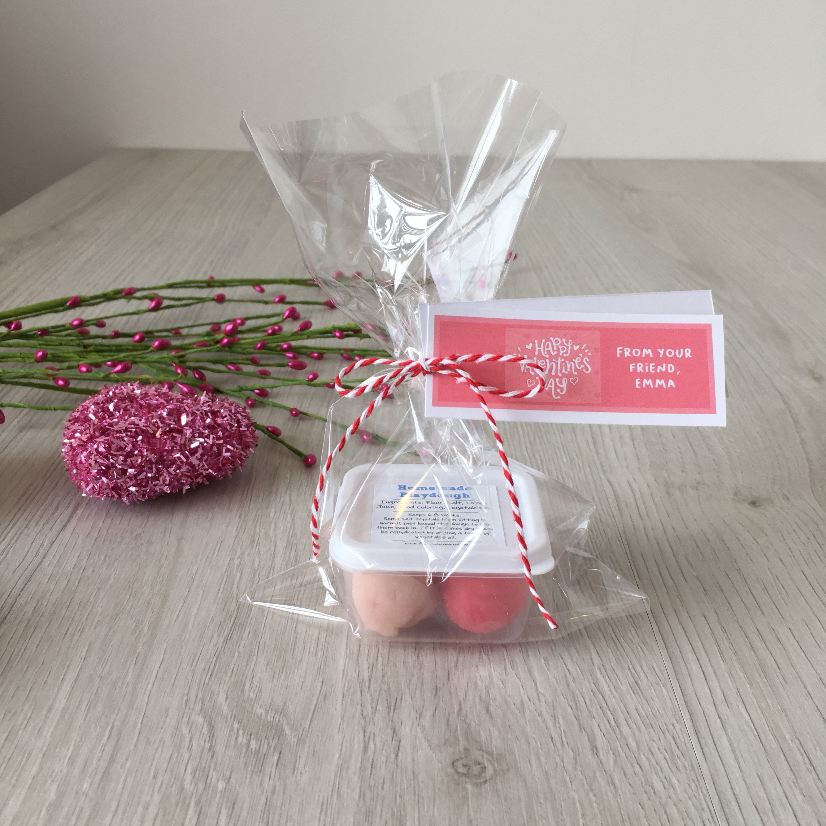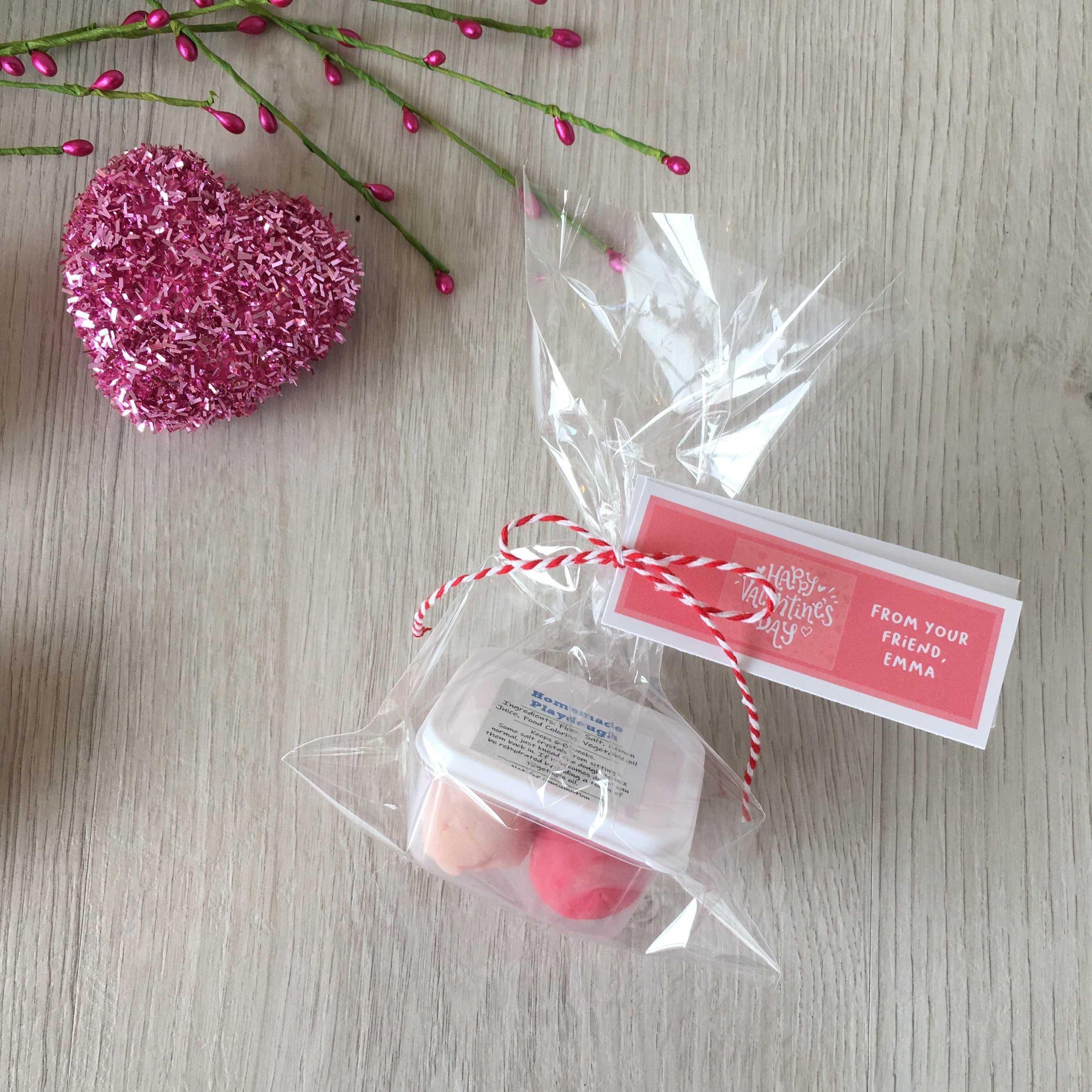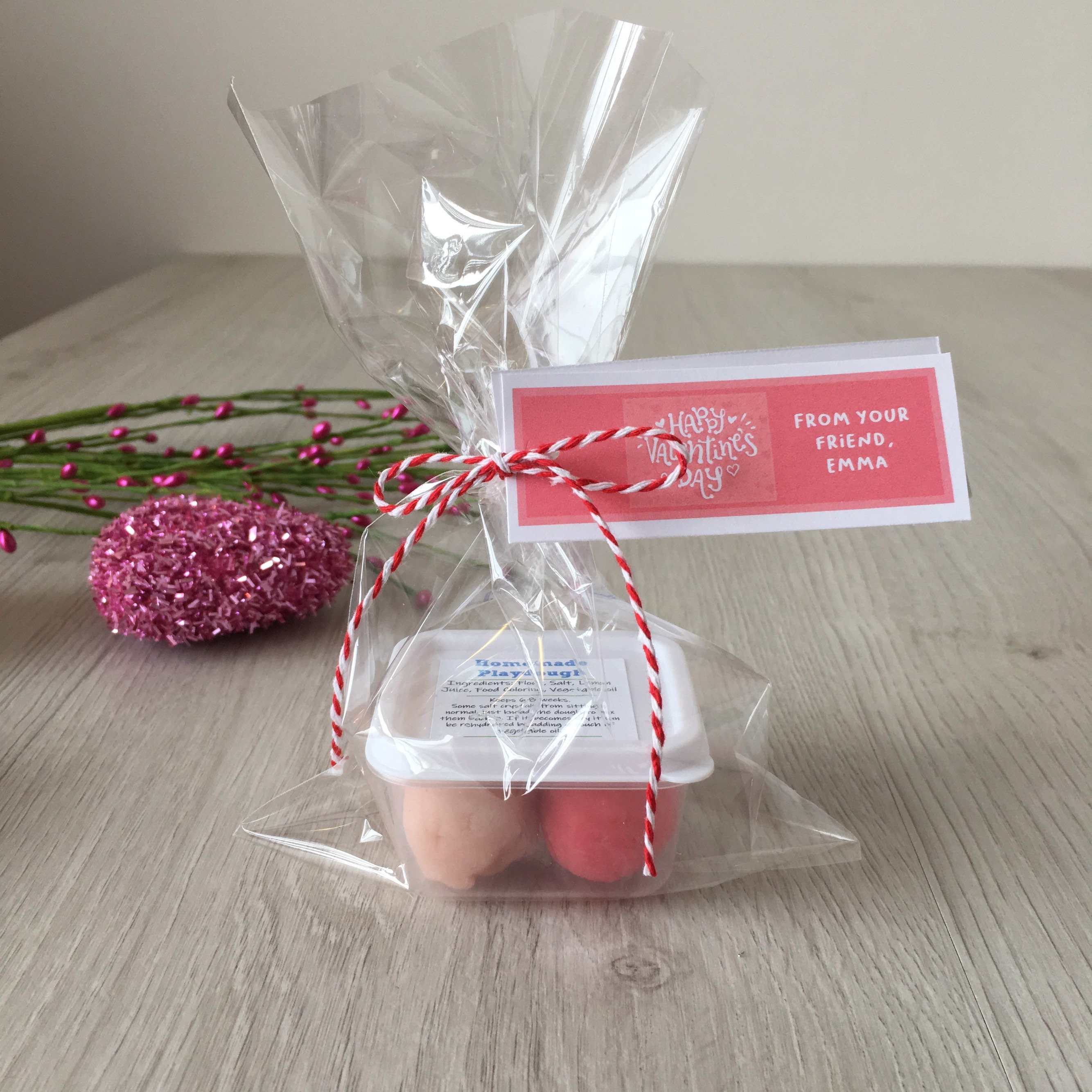 Handmade Valentine's theme play dough activity set, includes a container of handmade play dough in (2) colors and a customized tag with your child's name!