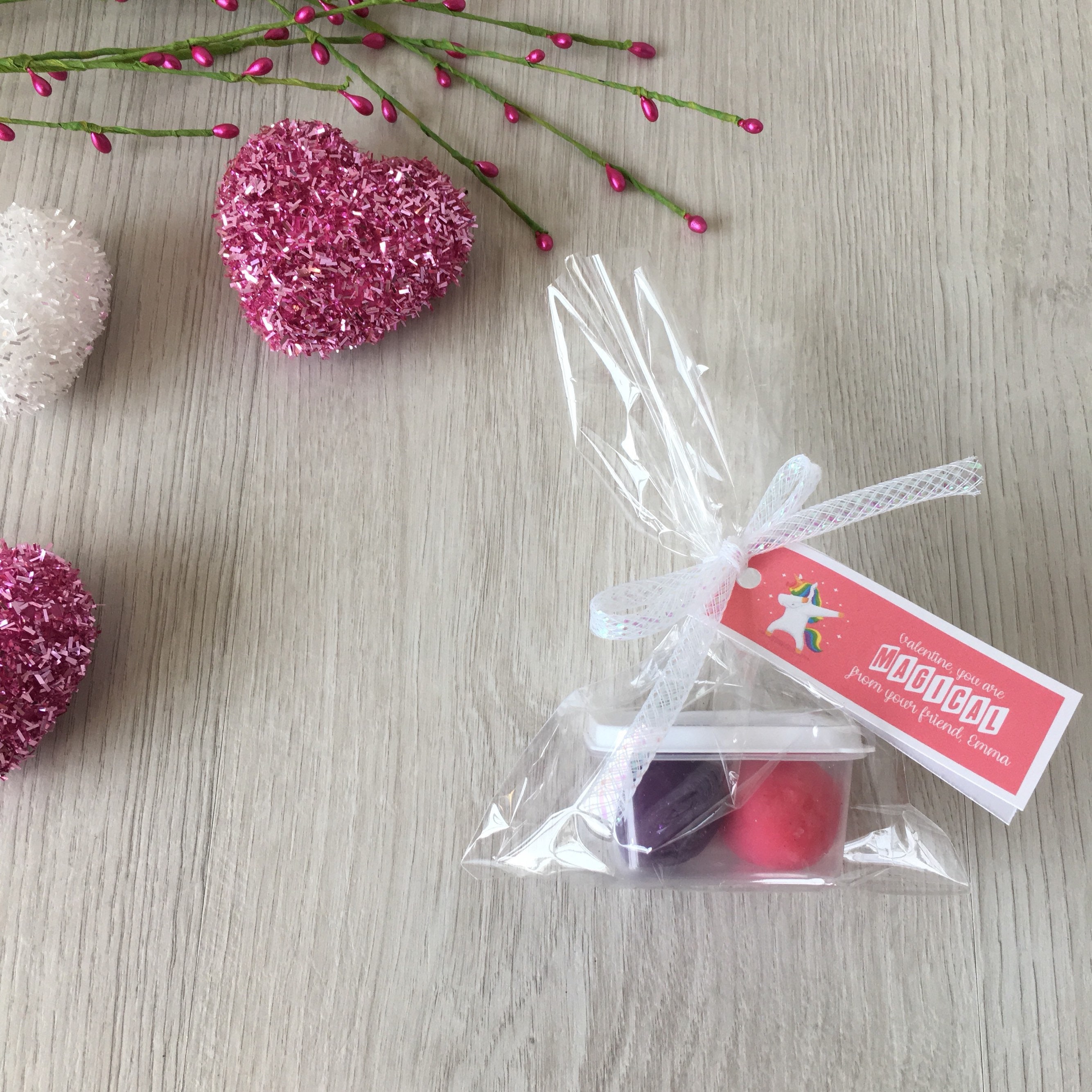 Play dough Valentines favors - handmade play dough - handmade playdoh - unplugged activity kits - non candy gift options - creative kids crafts - kids sensory play - play dough activity kits - childrens activity set - playdough kit - doughlightful - rainbow play dough - rainbow theme party - valentine's heart theme - play dough loot bags - valentine playdoh gifts - valentine's play dough kit - unicorn valentine's - unicorn theme valentine cards - magical unicorn theme