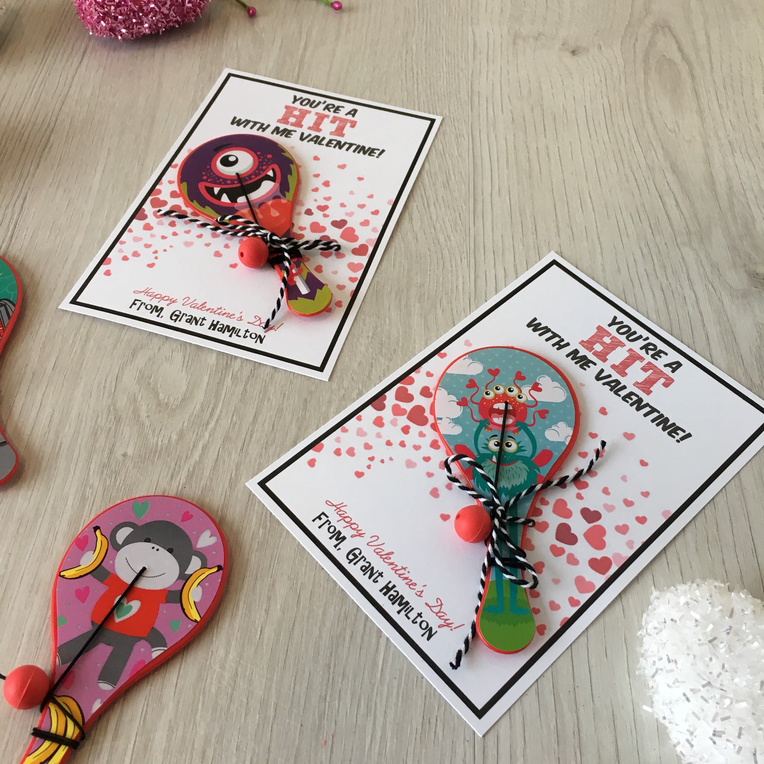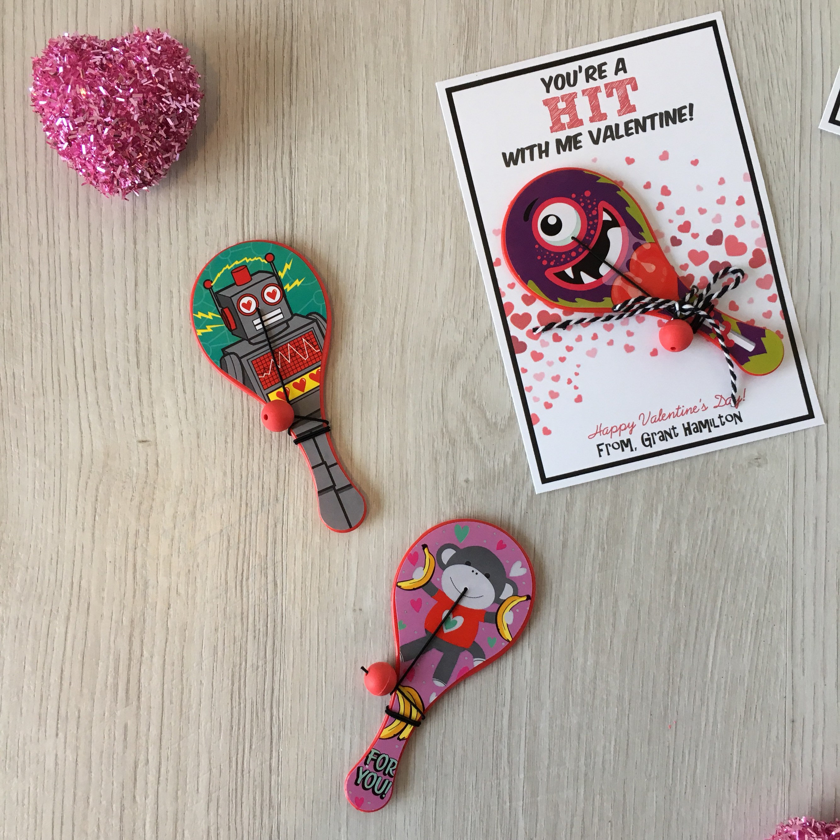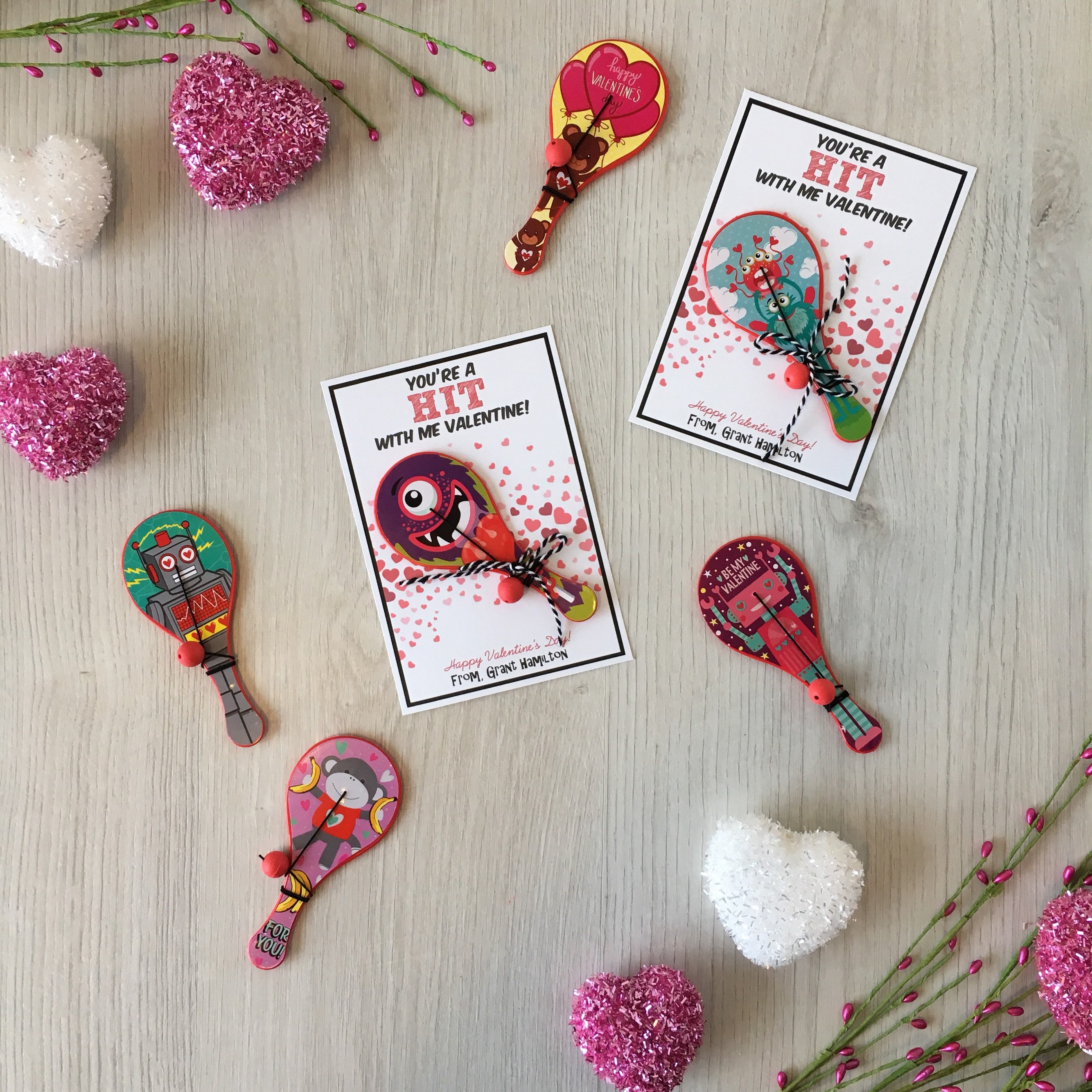 Valentine's Day Kids Cards - Valentines Day School Cards - Valentine's Day toy valentines - No Candy Valentines Day Cards - Valentines School Treats -β valentines classroom treats β kids classroom cards β kids thank you cards β kids school cards - craft Party favors - Valentines - unplugged activity kits β non candy valentines options - paddle ball valentines - bouncy ball valentine