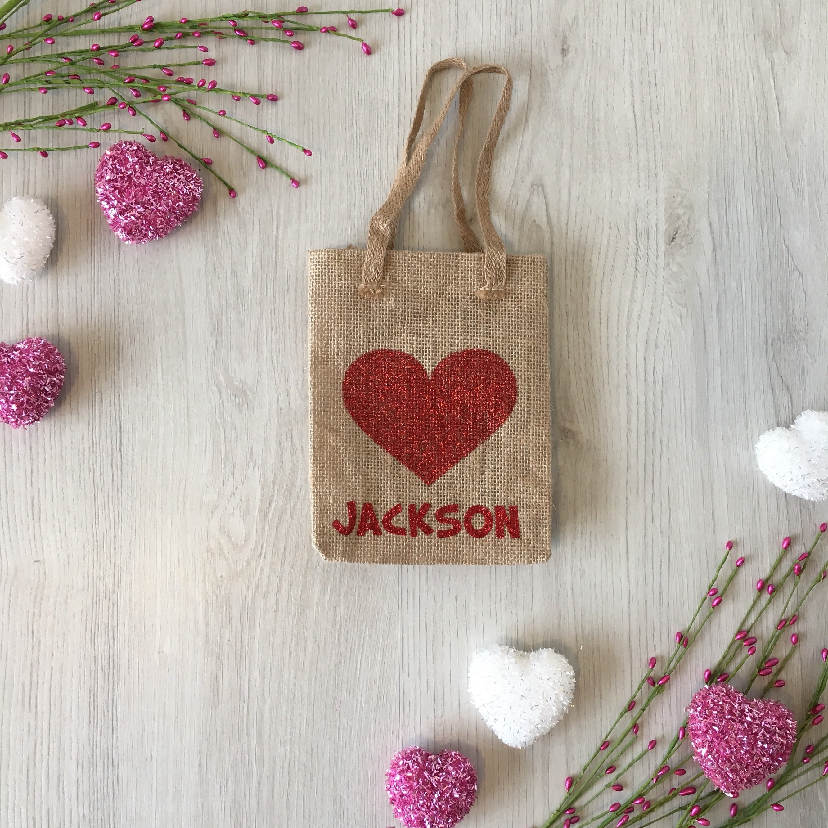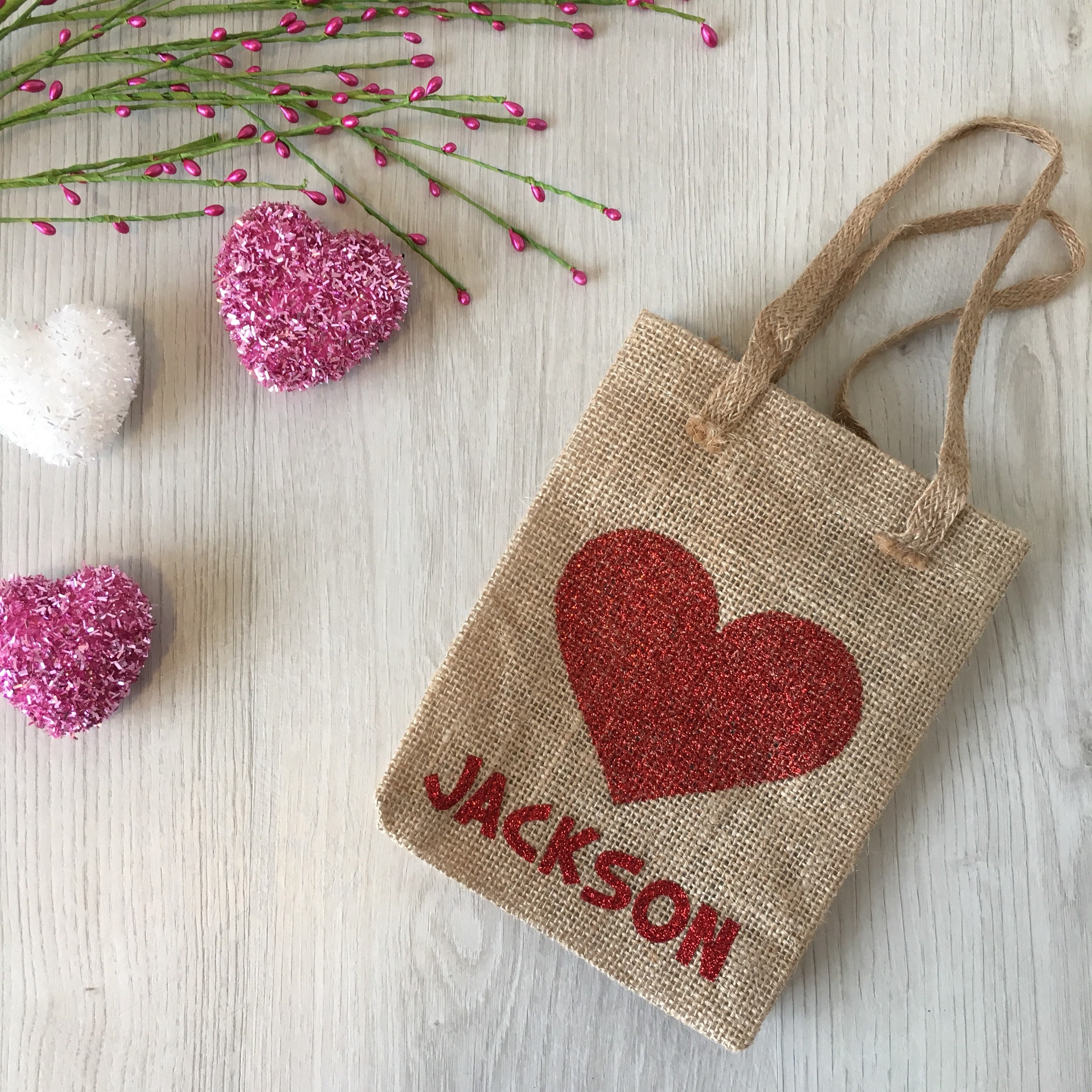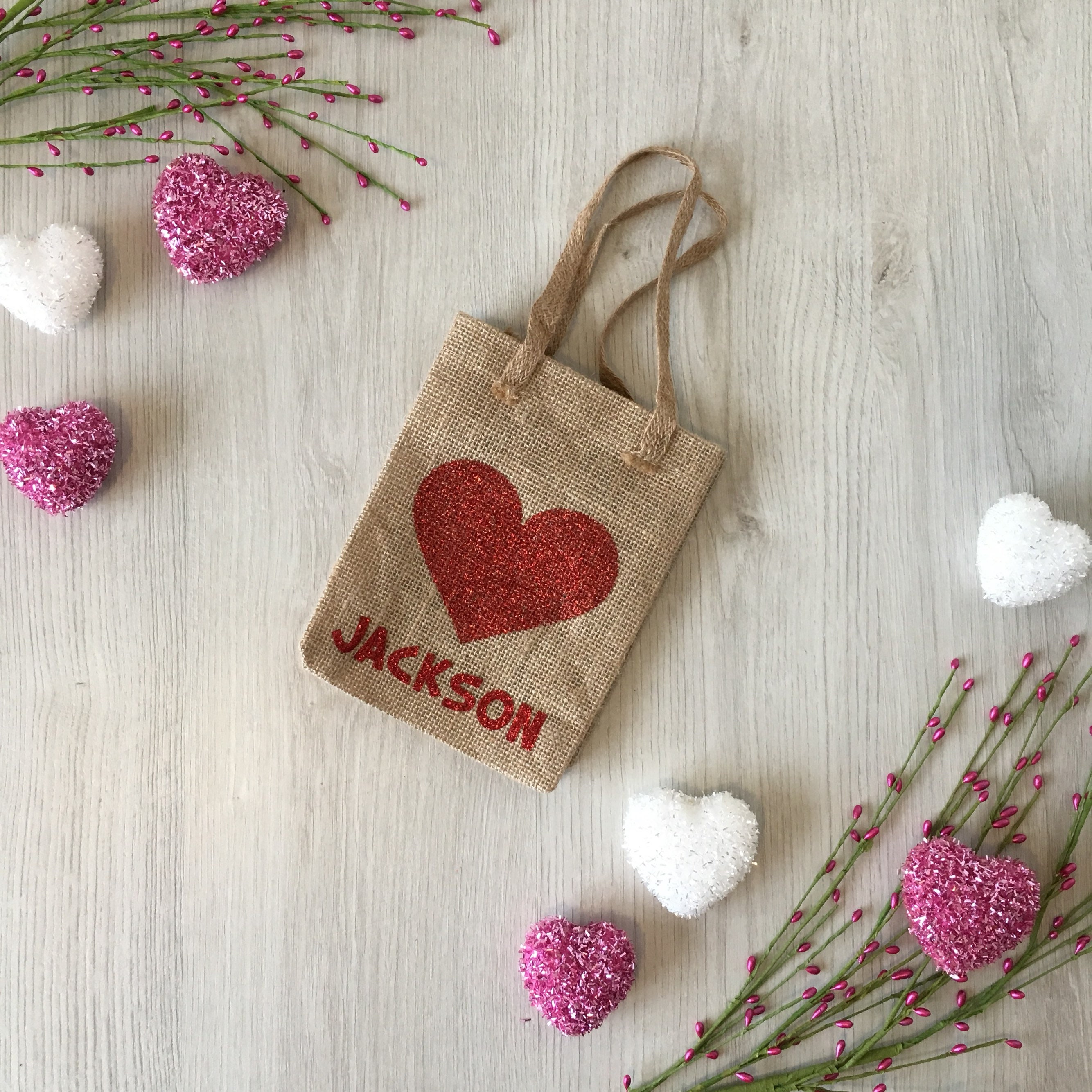 Burlap Valentine's gift / treat bag, customized with your childs name!