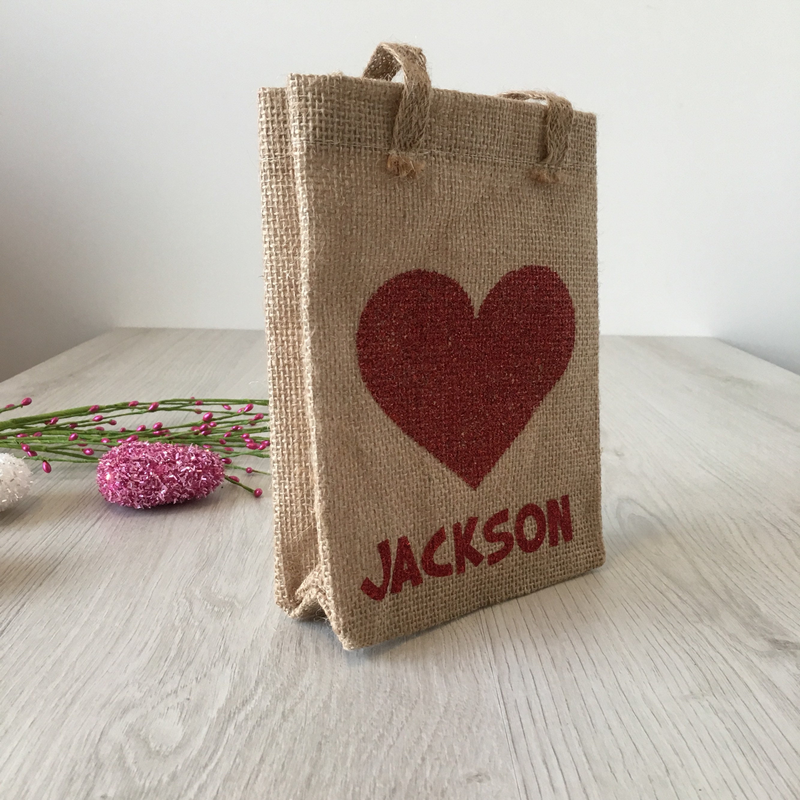 Please note the red glitter heart is pre-printed on the bags so unfortunatly the colour of the heart cannot be changed.
