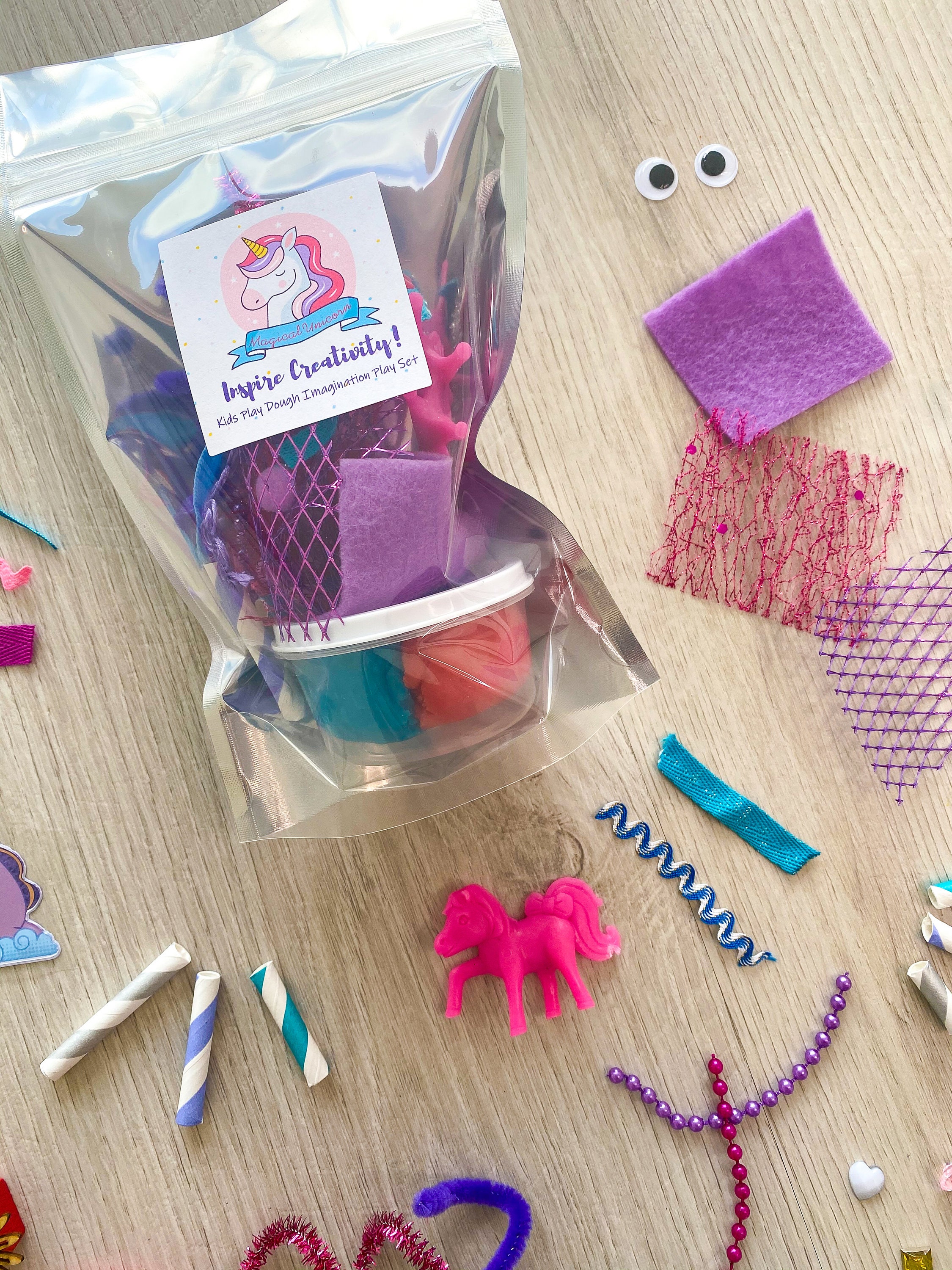 Play dough Party favors - handmade play dough - handmade playdoh - unplugged activity kits - stocking stuffers - non candy gift options - creative kids crafts - kids sensory play - play dough activity kits - childrens activity set - playdough kit - doughlightful - rainbow play dough - rainbow theme party - gluten free play dough - sensory play sets - sensory play dough loot bags - goodie bags - party favors - party favours - unicorn theme party - unicorn birthday party - unicorn loot bags - magical goodie bags
