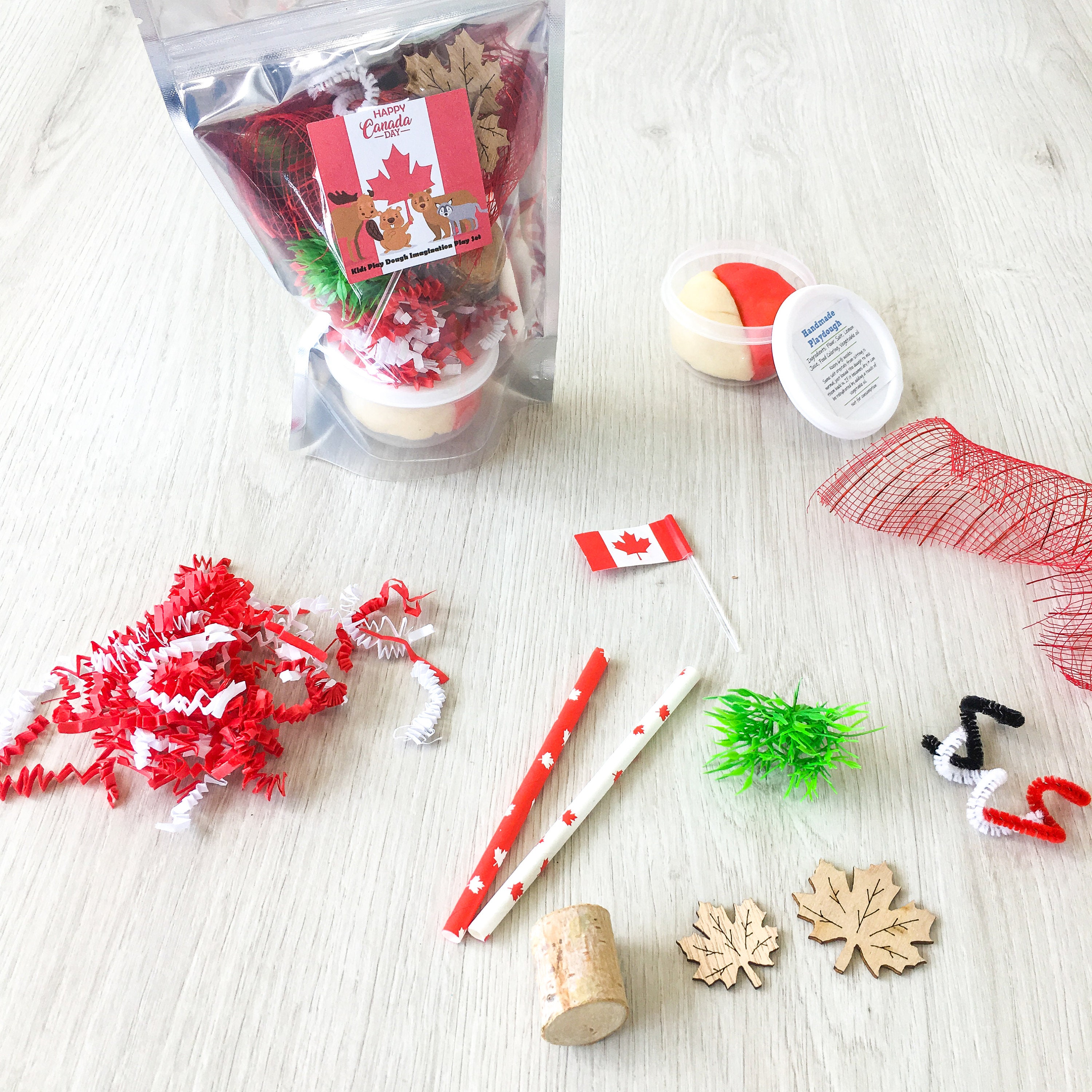 Play dough Party favors - handmade play dough - handmade playdoh - unplugged activity kits - stocking stuffers - non candy gift options - creative kids crafts - kids sensory play - play dough activity kits - childrens activity set - playdough kit - doughlightful - rainbow play dough - rainbow theme party - gluten free play dough - sensory play sets - sensory play dough loot bags - goodie bags - party favors - party favours - Canada day - Canada day theme party favors - Canadian - maple leaf party goodie bags