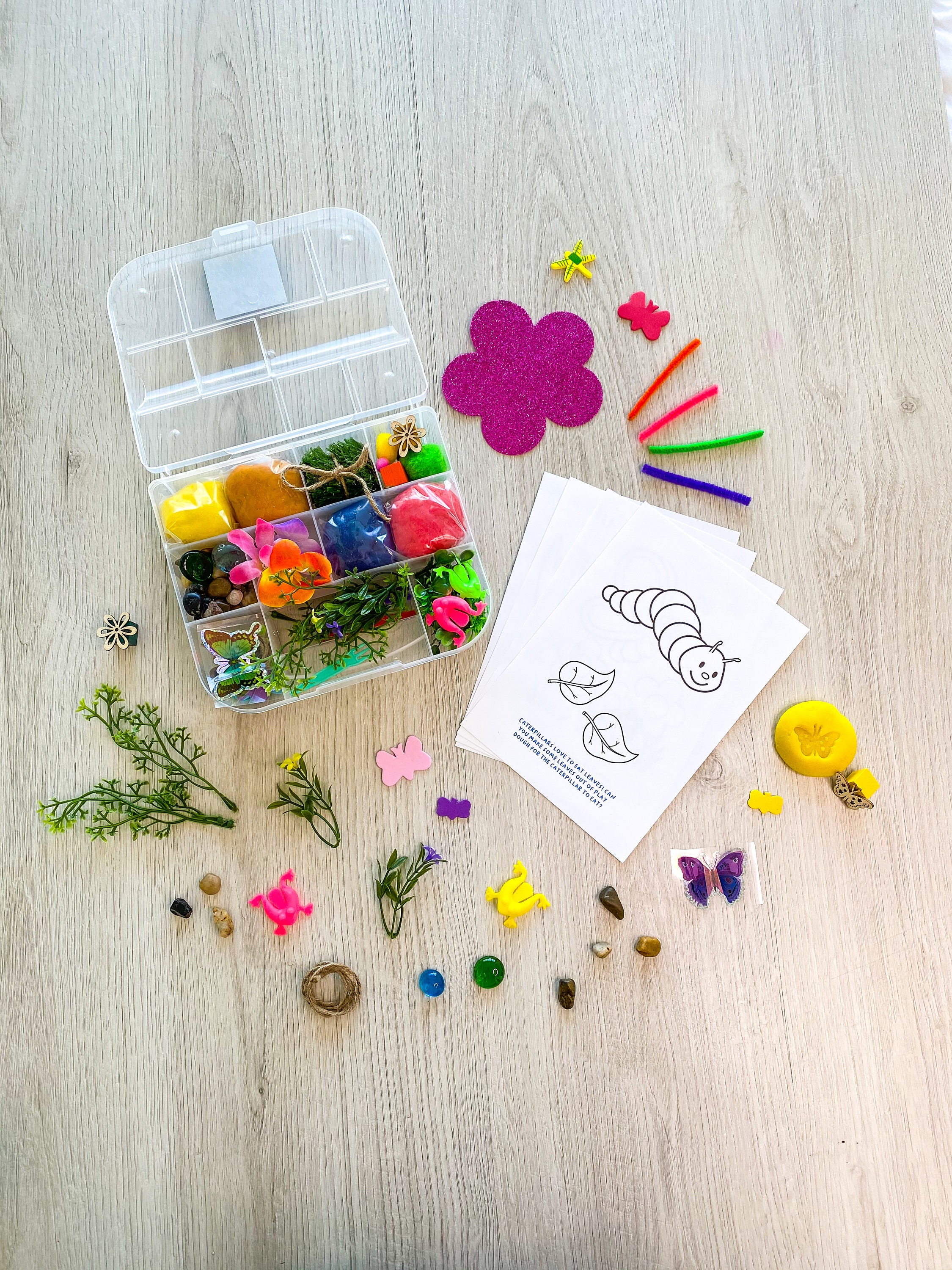 These sets are a perfect jumping off point for kids to explore their creativity through open ended play. Sensory open ended play is play that has no pre-determined instructions. Sets like this encourage kids to use the materials provided and to use their imagination to see what they can create. Kids learn so much through this style of play including problem solving skills, fine motor skills and gripping and molding skills which help to strengthen hand muscles in preparation for writing. These types of activities encourage them to make their own decisions about how to use the materials provided and how to bring their imagination to life!