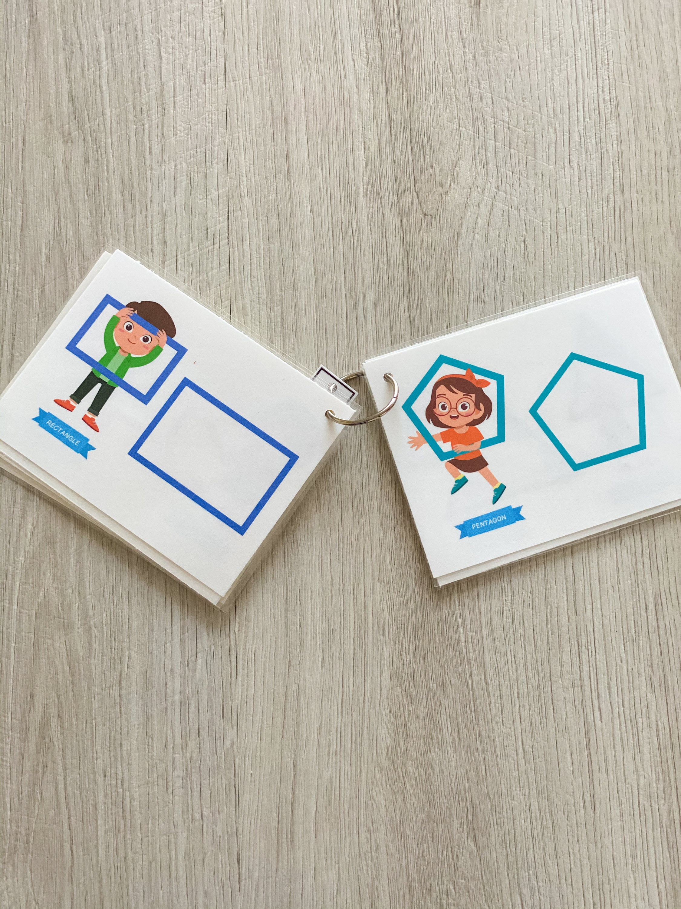 The cards are laminated and come on a binder clip so you can easily take them with you to a restaurant or when you're travelling for a fun activity on the go. This also allows them to be rearranged or shared between siblings if needed. The cover can also be personalized with your little ones name if you'd like.