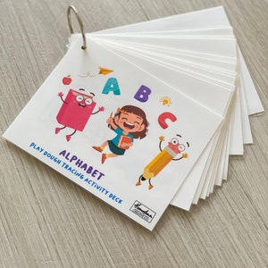 Play Dough stamp set with alphabet theme. This is a set of 26 stamps in total. The set includes the full alphabet set of stamps, and (6) Double sided activity cards