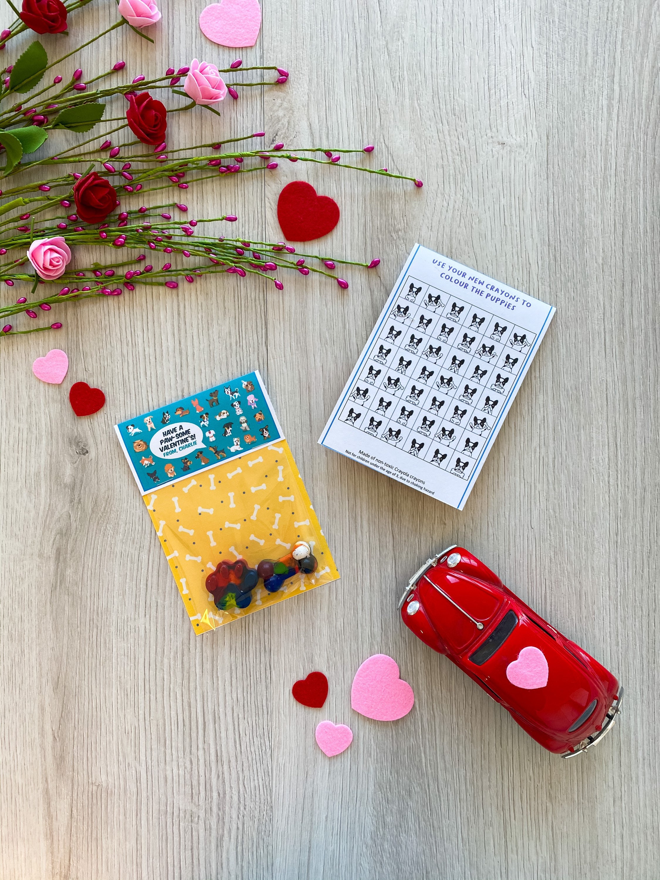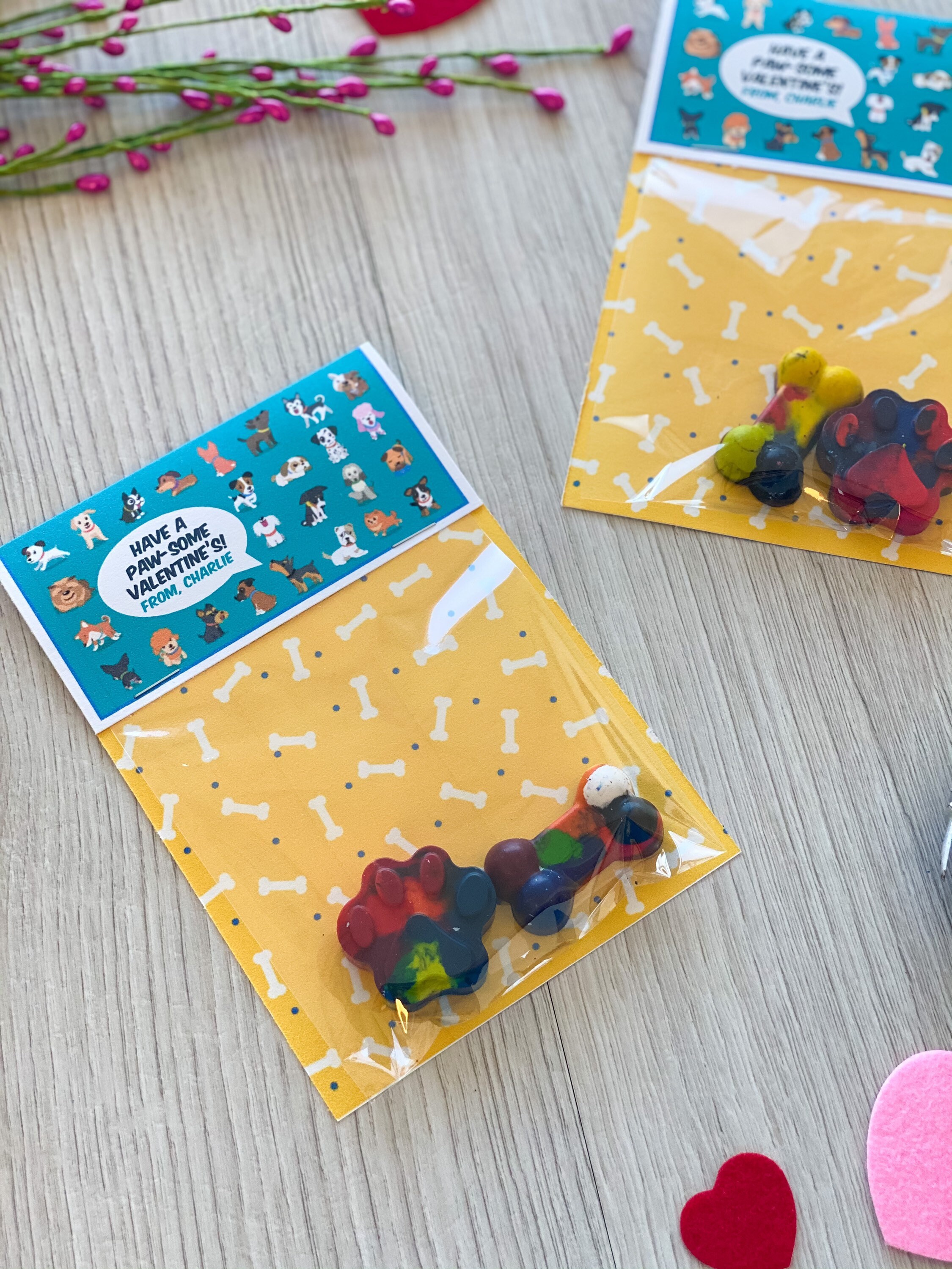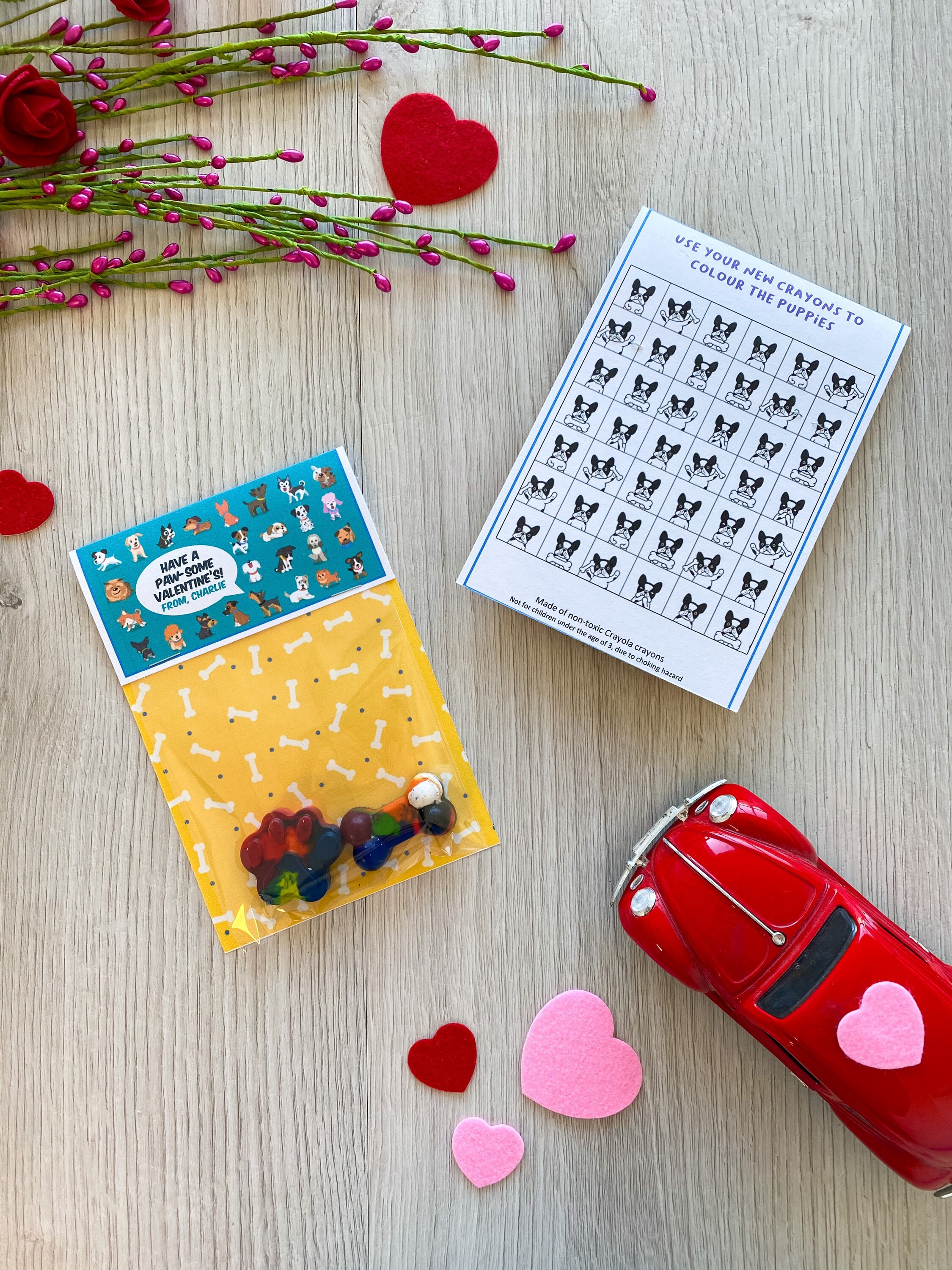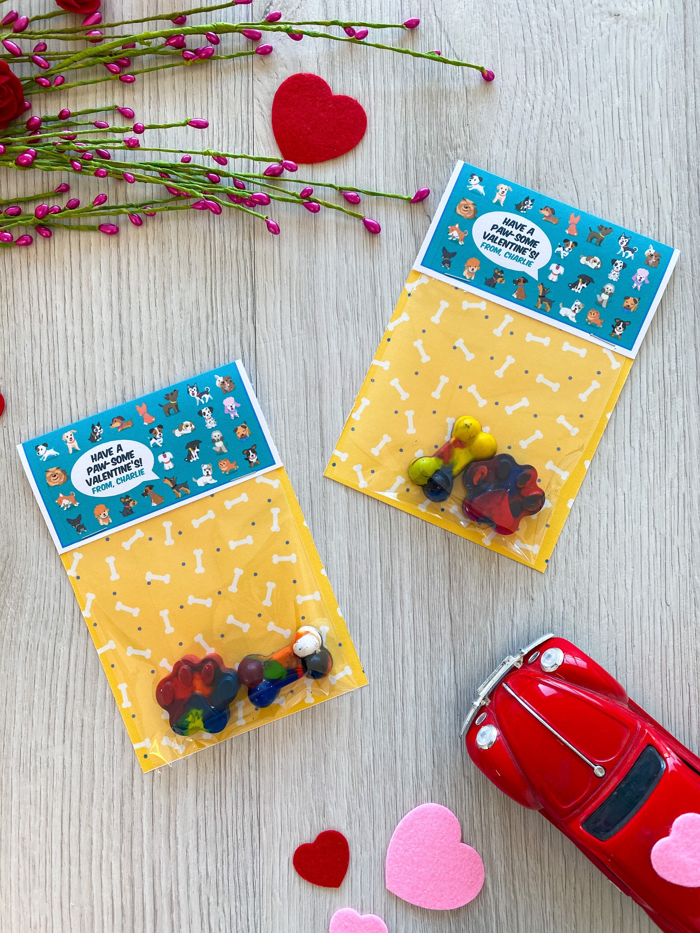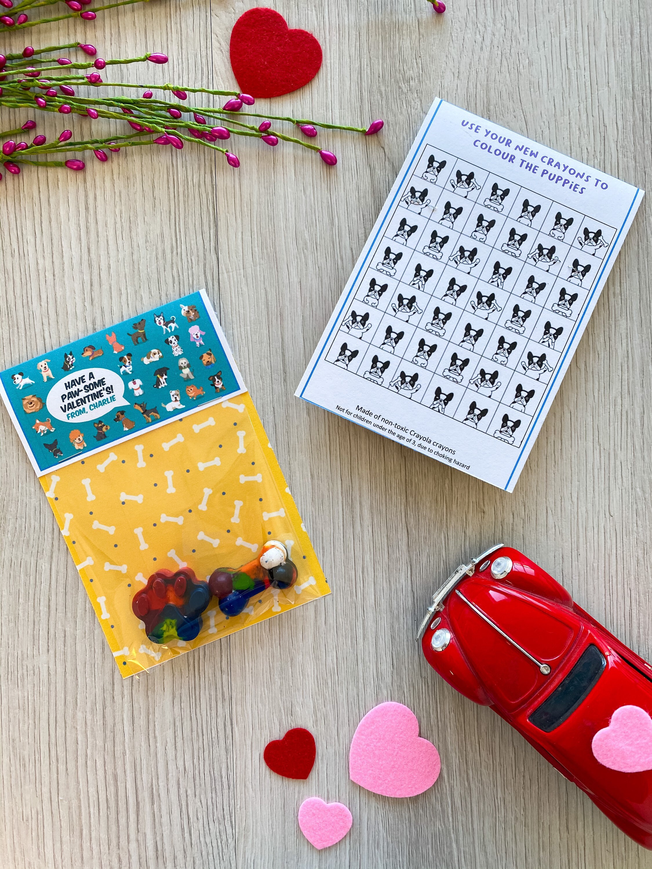 Valentine's Day Kids Cards - Valentines Day School Cards - Valentine's Day toy valentines - No Candy Valentines Day Cards - Valentines School Treats -β valentines classroom treats β kids classroom cards β kids thank you cards β kids school cards - craft Party favors - Valentines - unplugged activity kits β non candy valentines options - handmade unique shaped crayons - handmade crayons - multicolor crayon - color your own - crayon valentines - puppy dog valentines cards