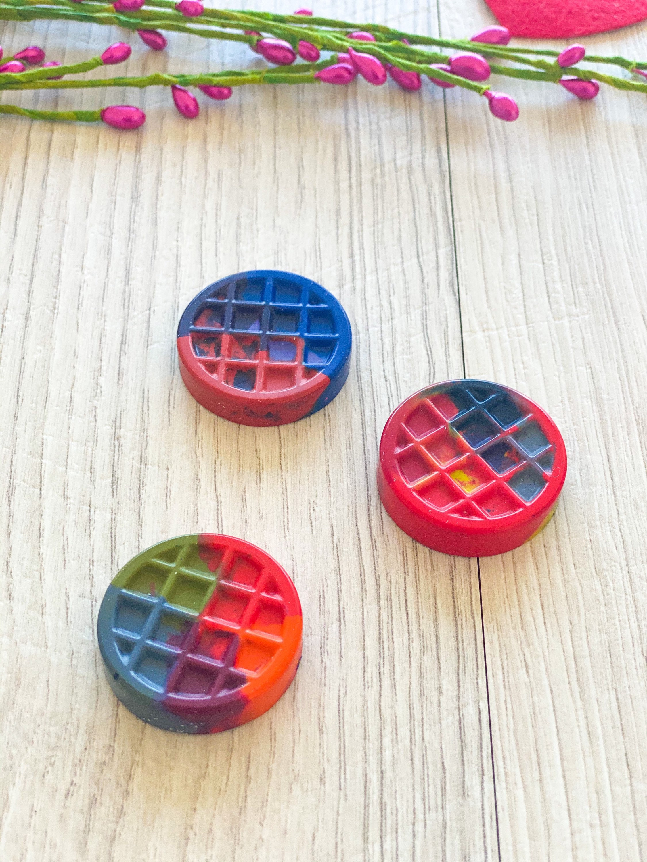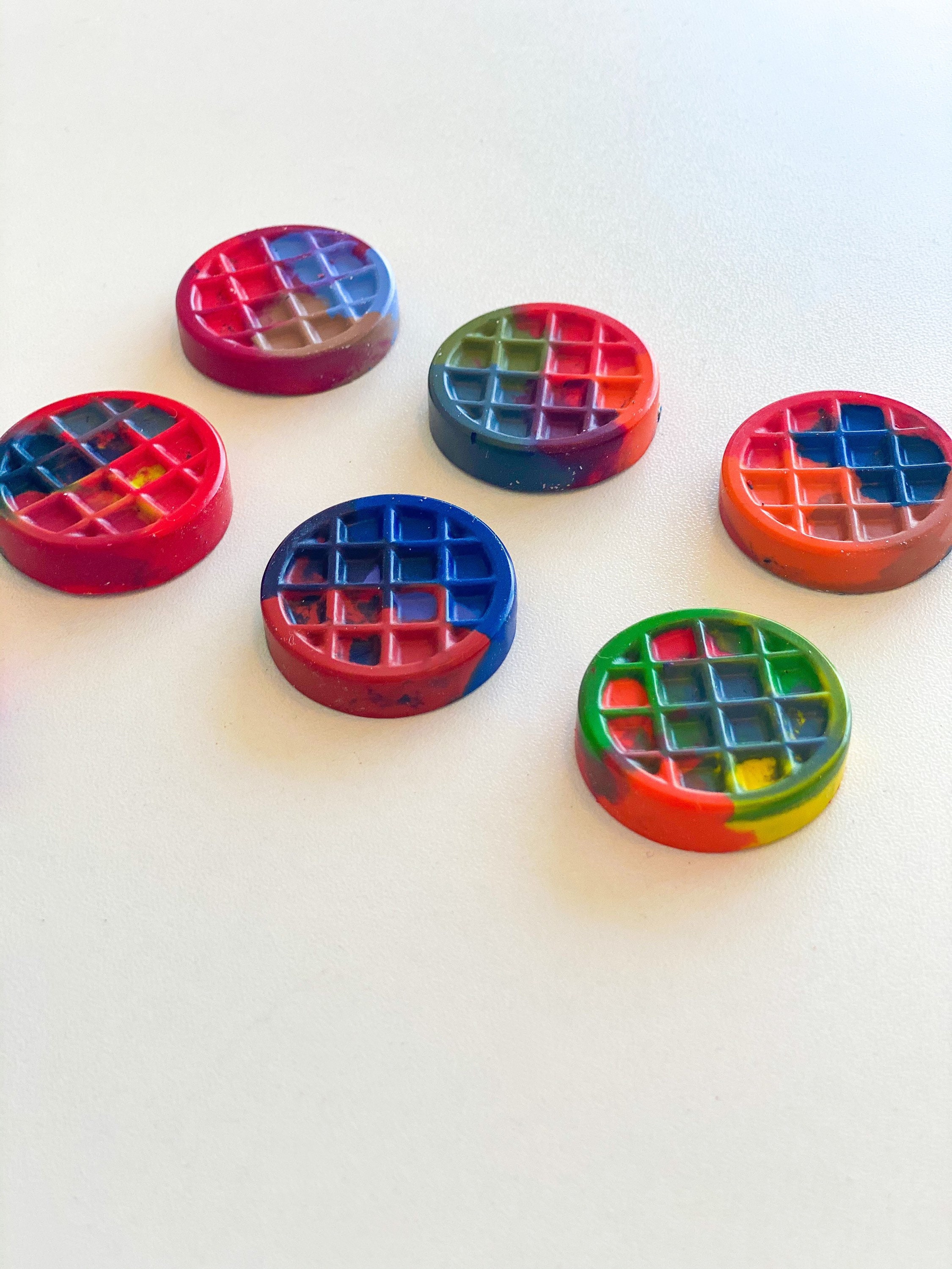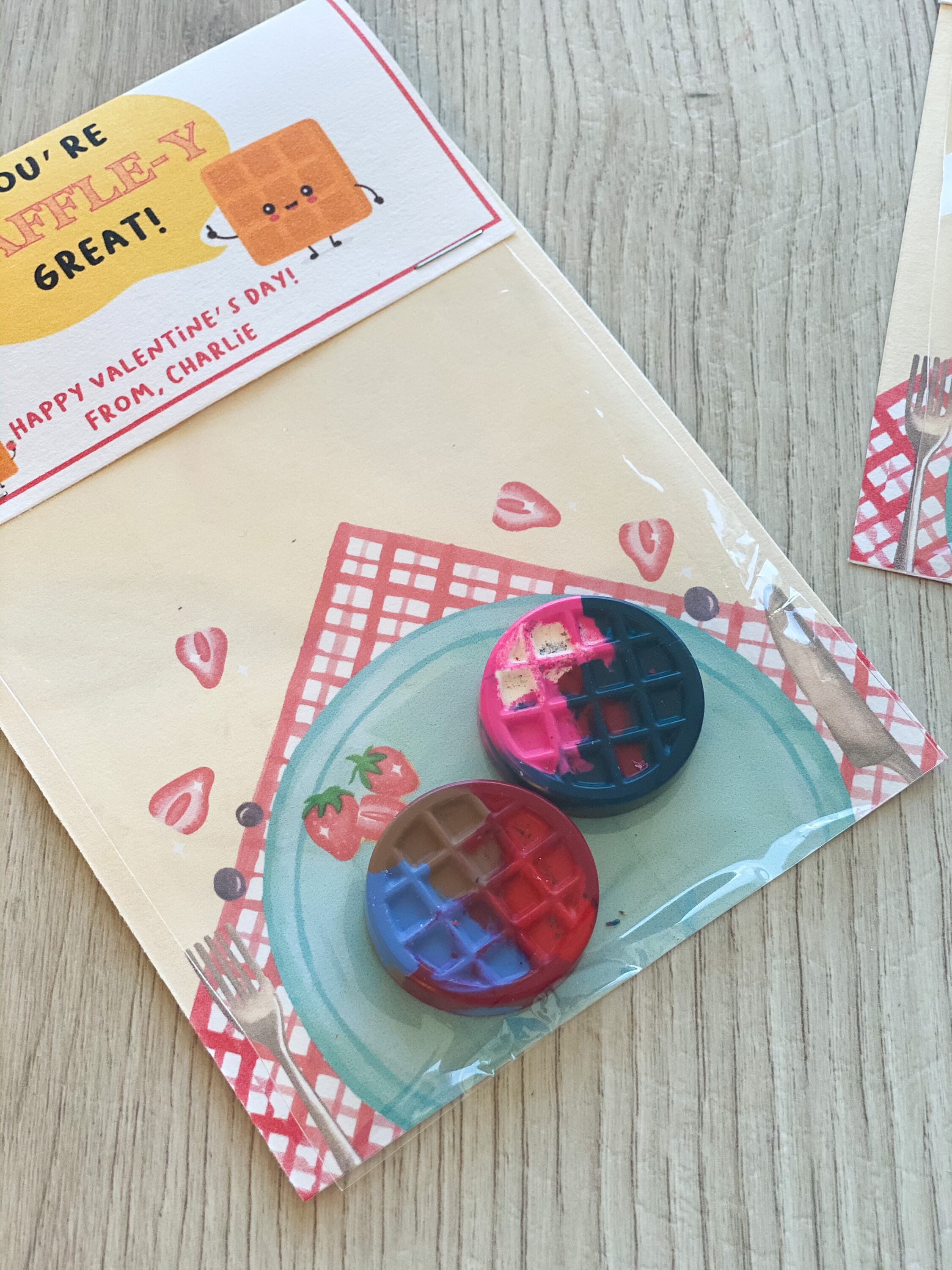 Featuring (2) handmade waffle shaped crayons that children can colour with