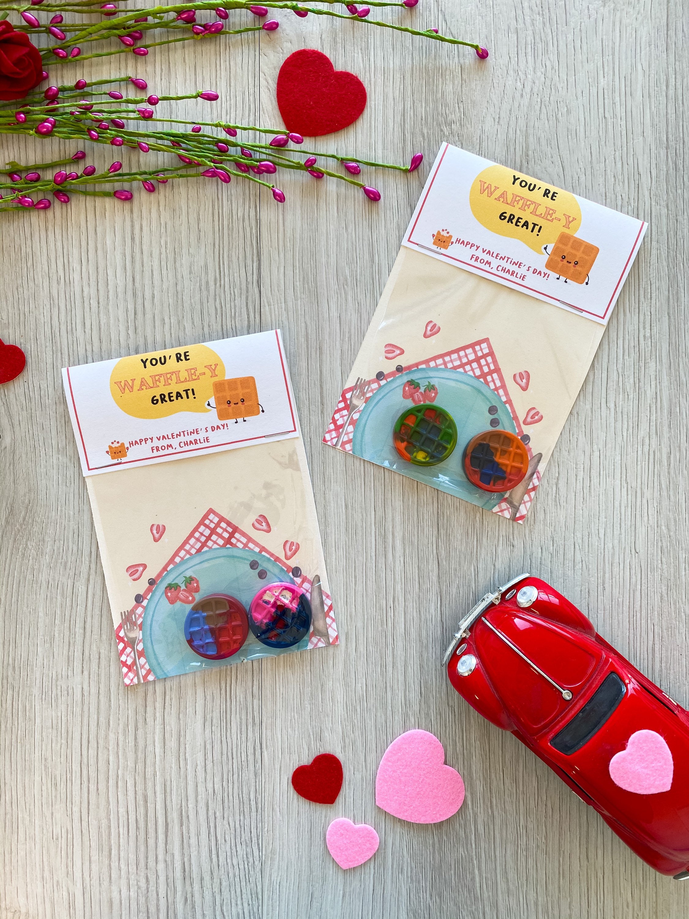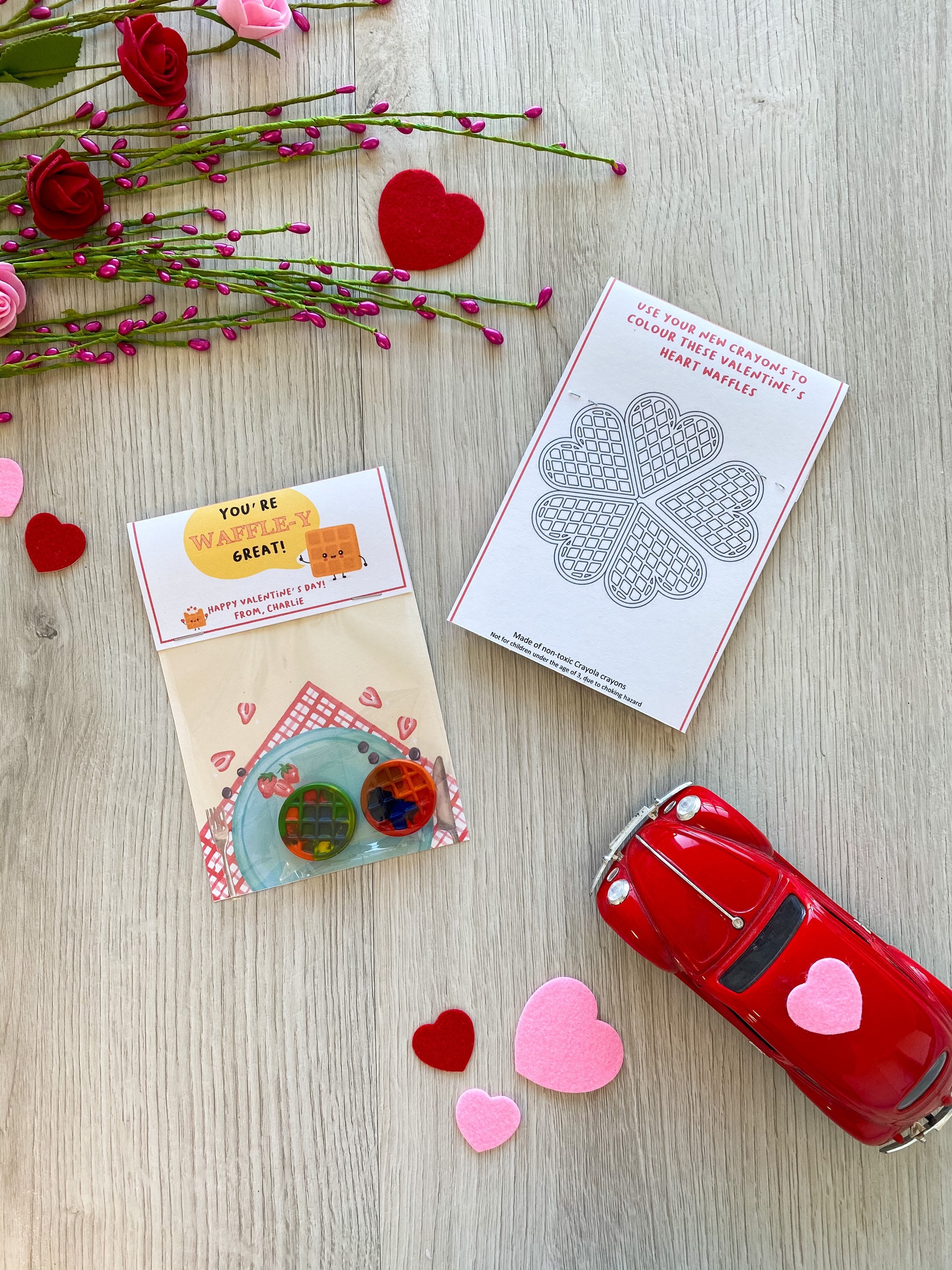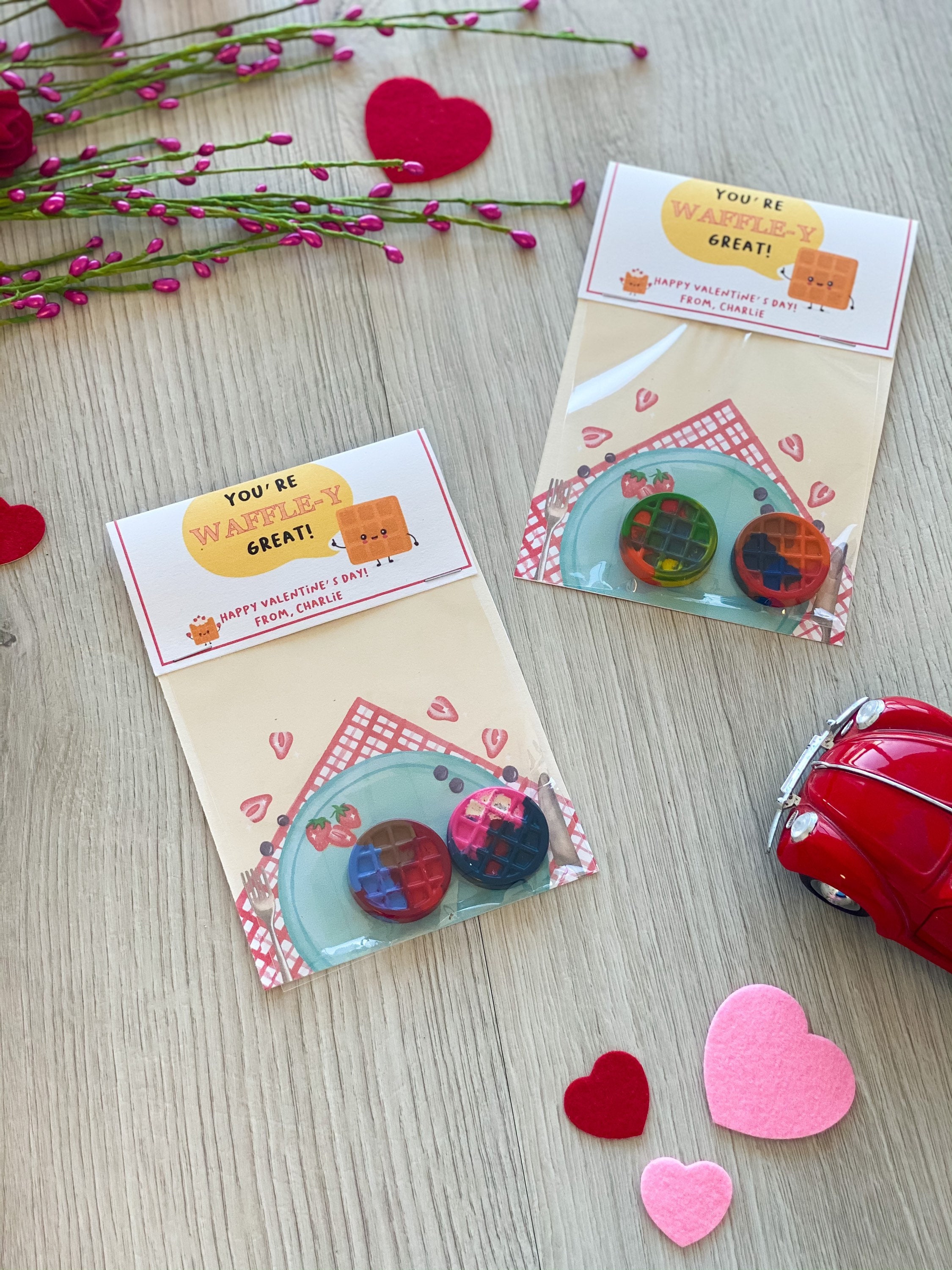 Featuring (2) handmade waffle shaped crayons that children can colour with